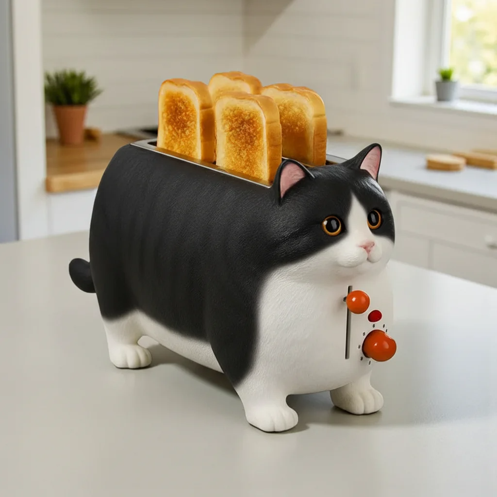 Säg adjö till tråkiga apparater. ToastKatt är inte bara funktionell – den är ett riktigt statement som visar personlighet. Gör dig redo för komplimanger och avundsjuka blickar från alla som kliver in i ditt unika kök.